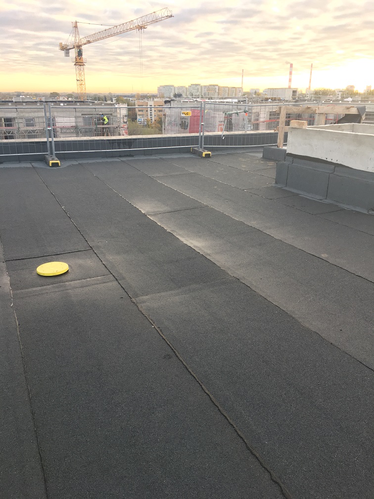 W zakresie prac Naszej firmy było kompleksowe wykonanie prac dekarskich. Istniejące podłoże zostało zagruntowane preparatem bitumicznym po czym wykonana została warstwa paroizolacyjna, termoizolacja dachu, szlichta spadkowa, papa podkładowa oraz nawierzchniowa. Wykonujemy także obróbki blacharskie.